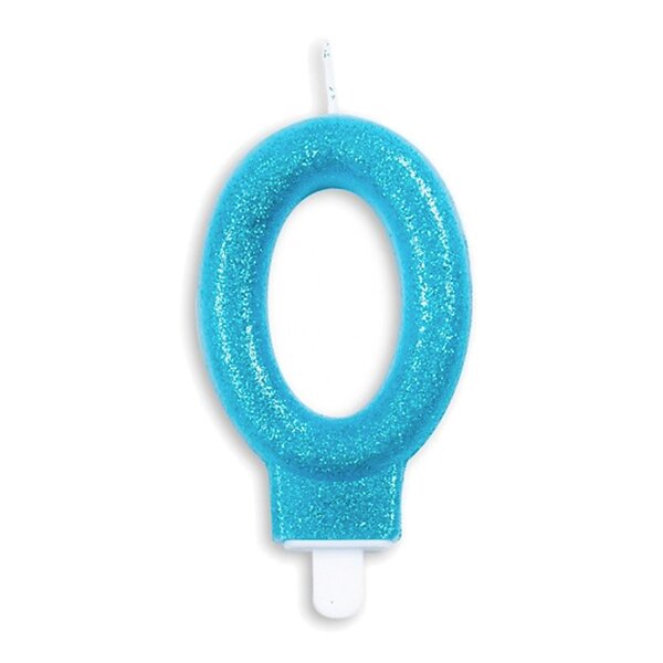 Globos Europe Tårtljus Siffra Glitter Blå Siffra 0