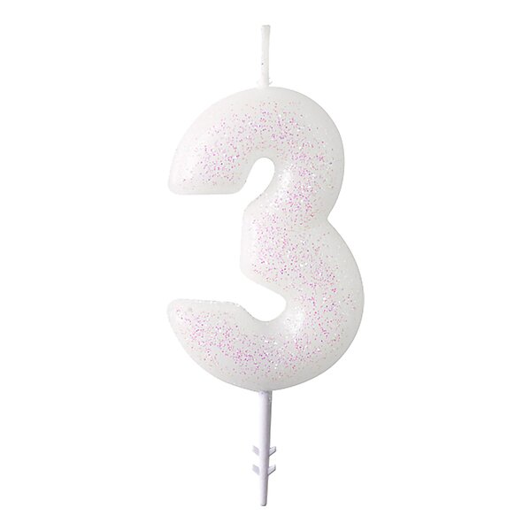 Glitter Tårtljus Vit Siffra Rosa Siffra 3