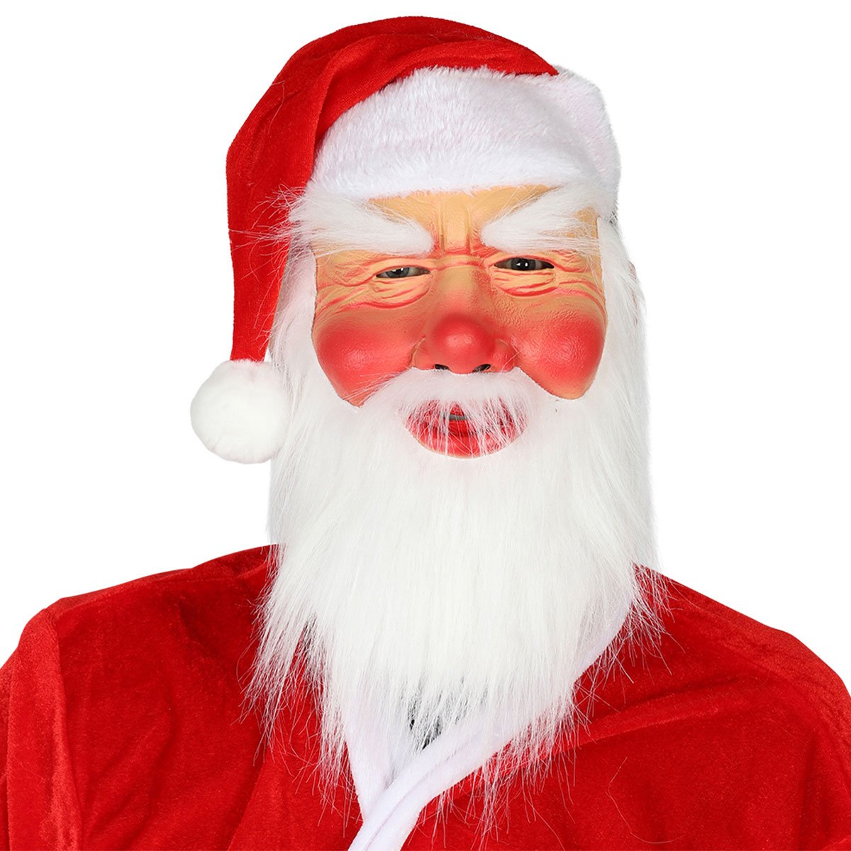KYEQATY Tomtemask med vitt skägg latex jul söt barn vuxna hela ansiktsmasker juldräkt för cosplay kostym julfest karneval