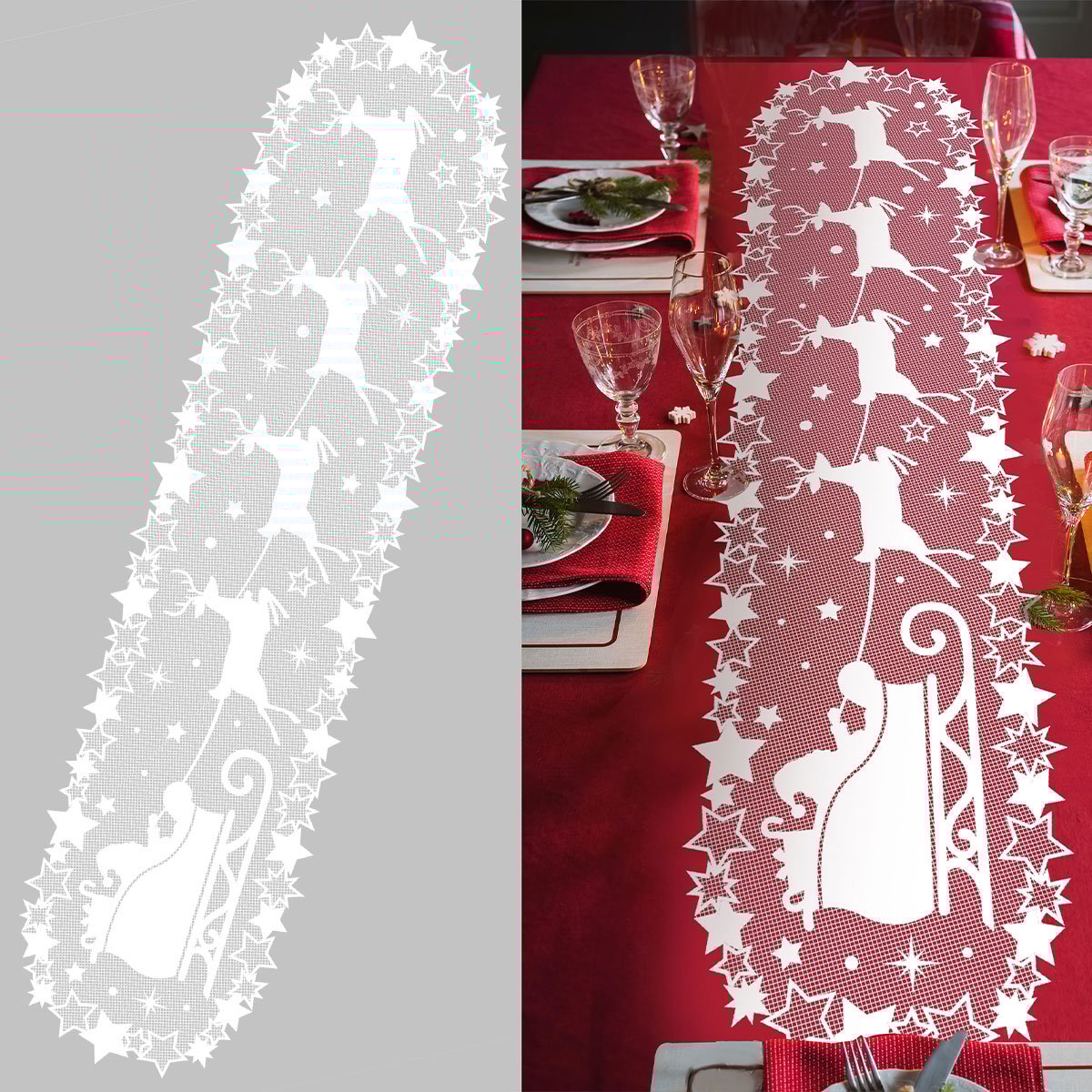Elrene Tomtens snöiga släde tyg bordslöpare, polyester, flerfärgad, 178 cm x 33 cm (set med 1)