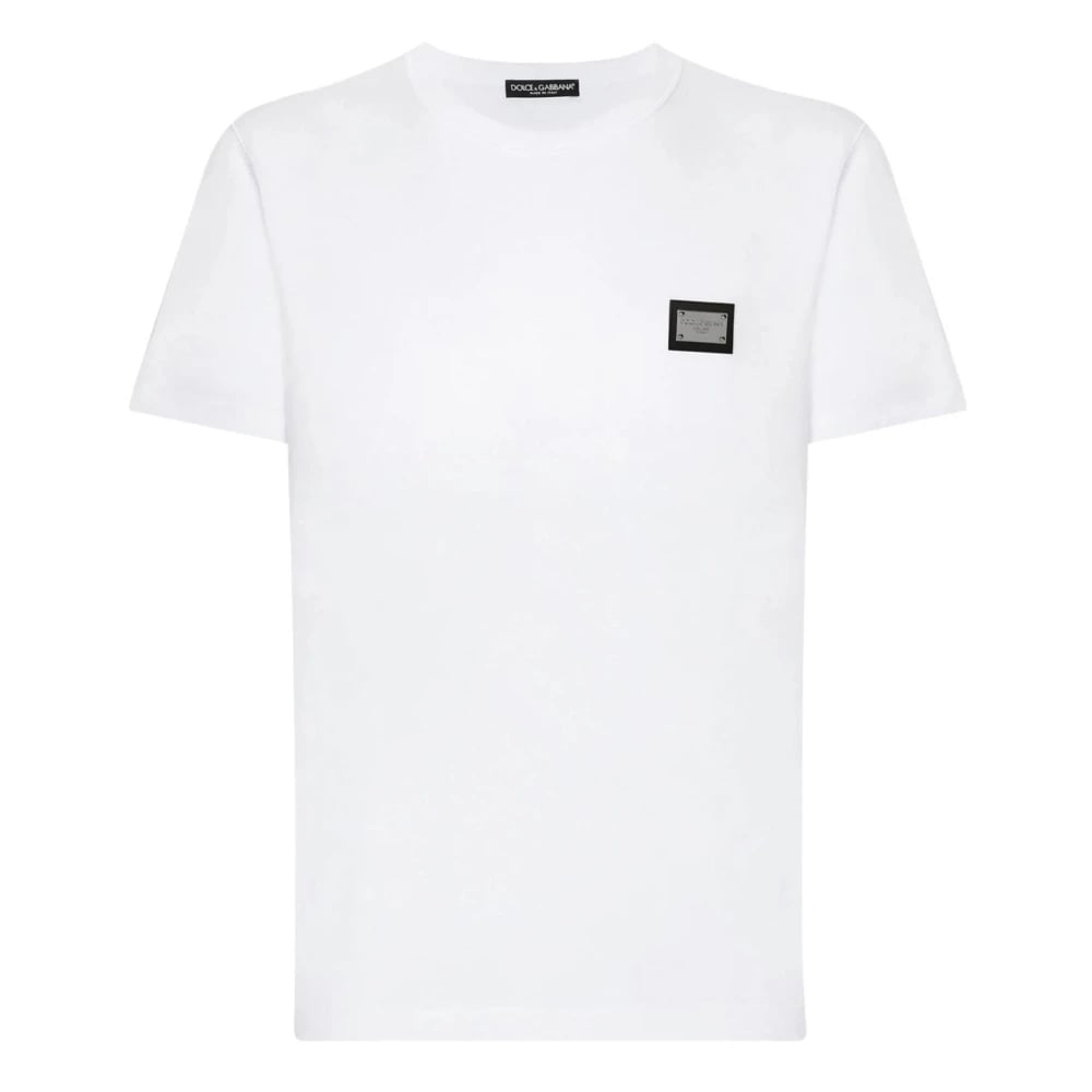 Dolce & Gabbana, Toppar , Herr, M, Bomull, Silver-tone logoplakett bomull T-shirt