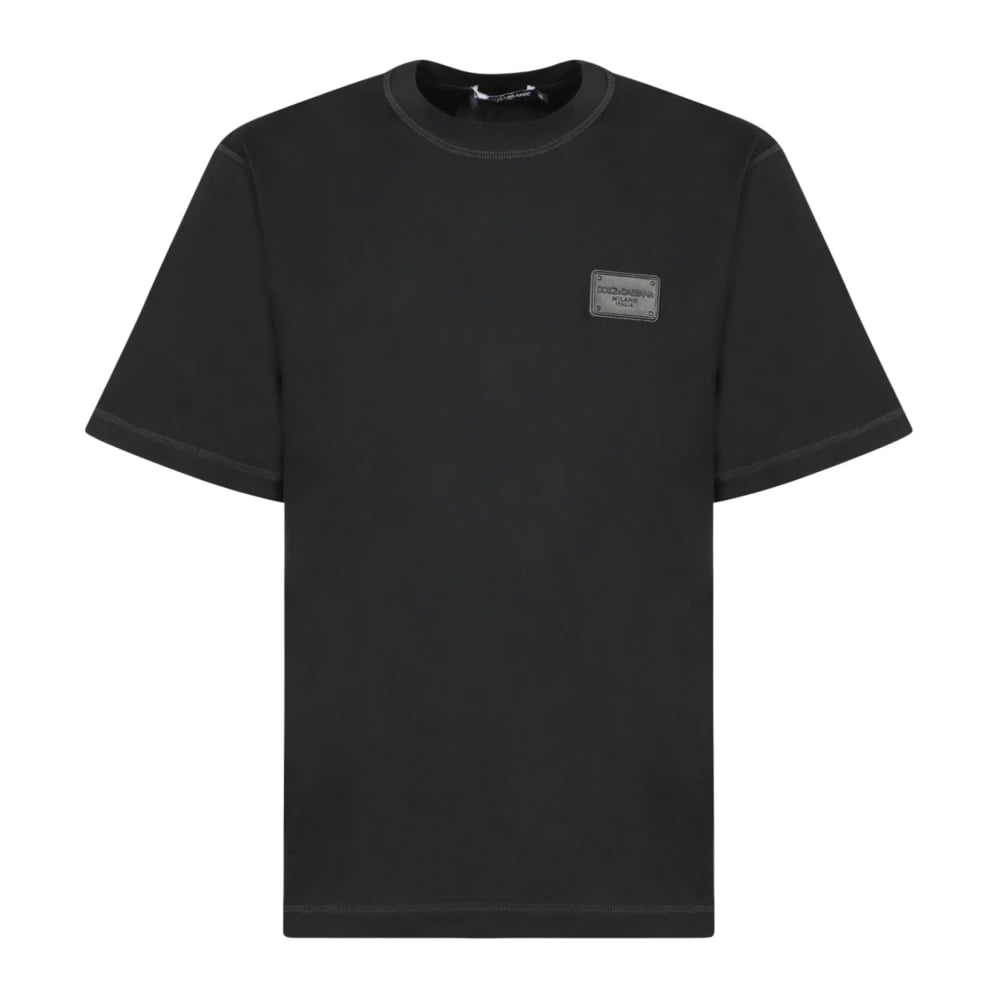 Dolce & Gabbana, Toppar , Herr, S, Bomull, Silver-tone logoplakett bomull T-shirt