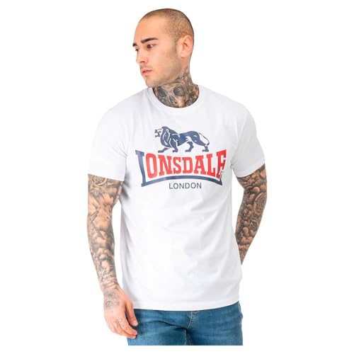 Lonsdale Lejon Two Tone T-shirt för män, Vit/marin/röd, L