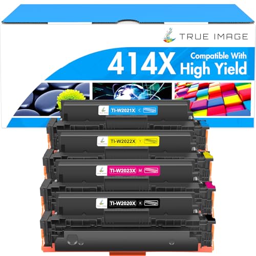 True Image kompatibel tonerkassett ersättning för HP 414X W2020X W2020A 414A HP Color Laserjet Pro MFP M479fdw M454dw M454dn M479 M479fdn skrivare toner inget chip (svart cyan gul magenta, 4-pack)