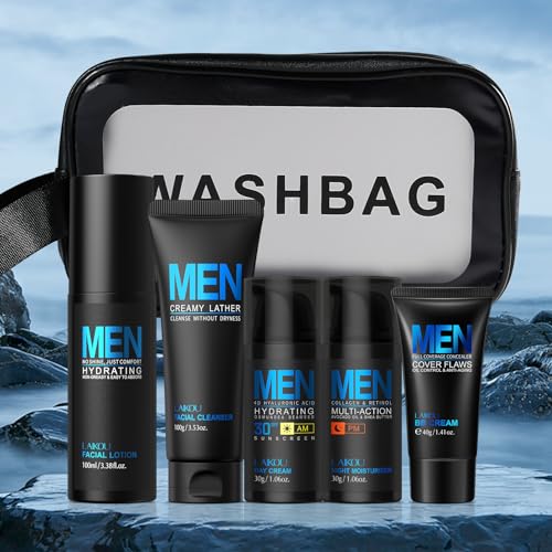 LAIKOU Hudvård Set för Män, 5-delars Ansiktsvårds Kit med Rengöring, Toner, Dag- & Nattkräm samt BB-kräm, För Trött och Glåmig Hud, Återfuktande & Mattande Effekt (B)