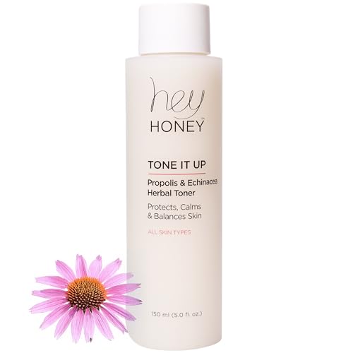 Hey Honey Tone It Up Ansiktstoner med propolis, echinacea och niacinamid, lugnar hudrodnad, återfuktar och återställer hudbarriären, alkoholfri toner för känslig och rosacea-benägen hud, 150 ml