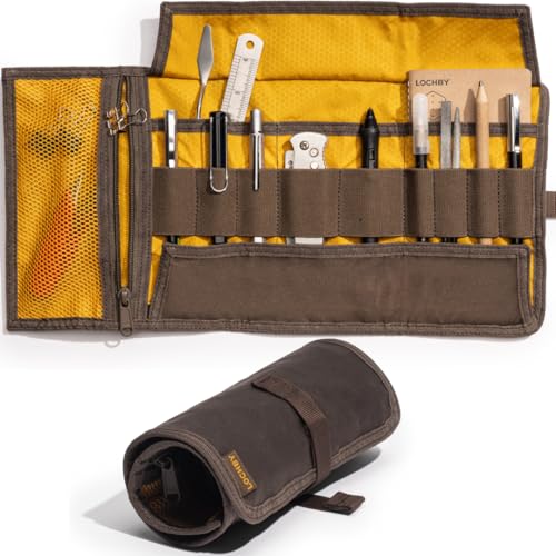 LOCHBY Verktygsrulle, 20 x 40 cm (orullad) robust vardagsbärsorganisatör för pennor, verktyg och mer taktiska minimalistiskt tillbehör för män och kvinnor tillverkad med vaxad duk – aluminiumkrokfäste