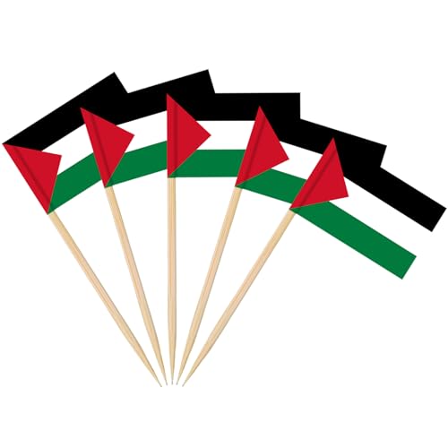 AhfuLife 100/200 st palestinska tandpetare flaggor tårtdekorationer, palestina cocktailpinne flagga för smörgås mat cupcake toppers festdekorationer (100 st)