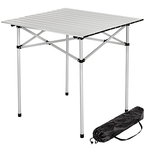 BAKAJI Tabell Camper Camping Picknick Aluminium Hopfällbar Top Rullbar Spara och lätt, perfekt för Sagre Mässor Trädgård Hem (70 x 70 cm)