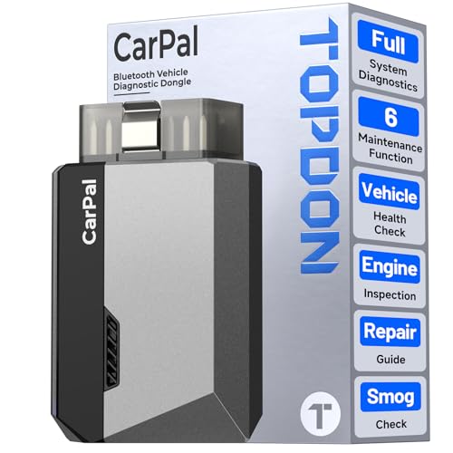 TOPDON CarPal-A OBD2-kodläsare Bluetooth, alla system OBD2-skanner för iOS och Android, fordonshälsovård, 6 underhållstjänster, smog-check, reparationsguide, 1 års gratis uppdatering