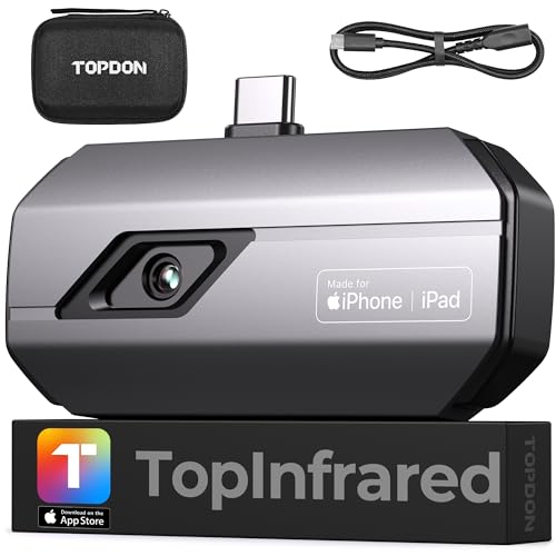 TOPDON TC002 värmekamera för iOS, 512 x 384 superupplösning, 40 mK värmekänslighet, -20 ℃ till 550 ℃, 3 värmemätningar och 11 färgpaletter, 256 x 192 IR-upplösning värmekameror för iPhone och iPad