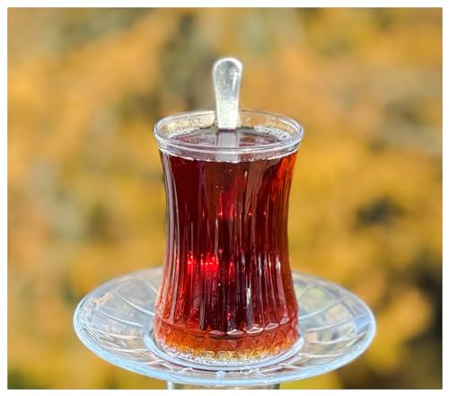 Topkapi – 18 delar turkiskt teset ela-Sultan för 6 personer │ XL storlek för tenjutning │ 6 teglas, 6 underlägg och 6 teskedar │ komplett set │ fraktsäkert förpackad