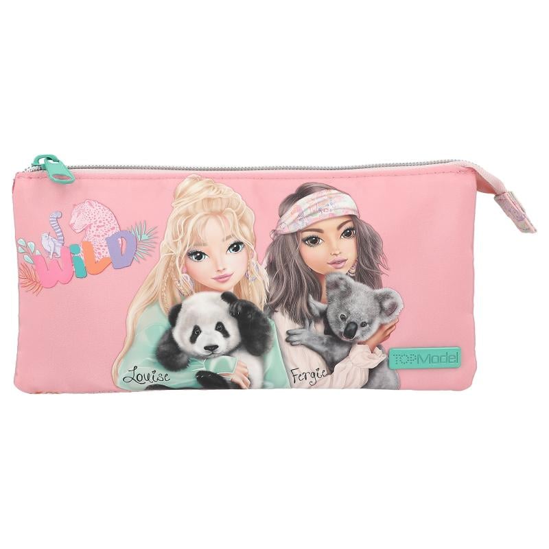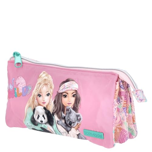 Depesche 12792 TOPModel Wild – fläktslip i rosa, med modellmotiv och färgglatt djurmönster, pennfodral med 3 fack med dragkedja