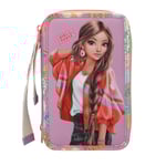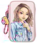 Depesche 13282 TOPModel Girl Power – fyllt 3-fack pennfodral i beige, med modellmotiv och färgglada batches, pennfodral med färgpennor, sax, linjaler och mycket mer.