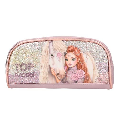 Depesche 13294 TOPModel Viva lila – pennfodral i lila, med modellmotiv, häst och glitter, pennfodral med dragkedja, flerfärgad, TOPModel Viva Violet