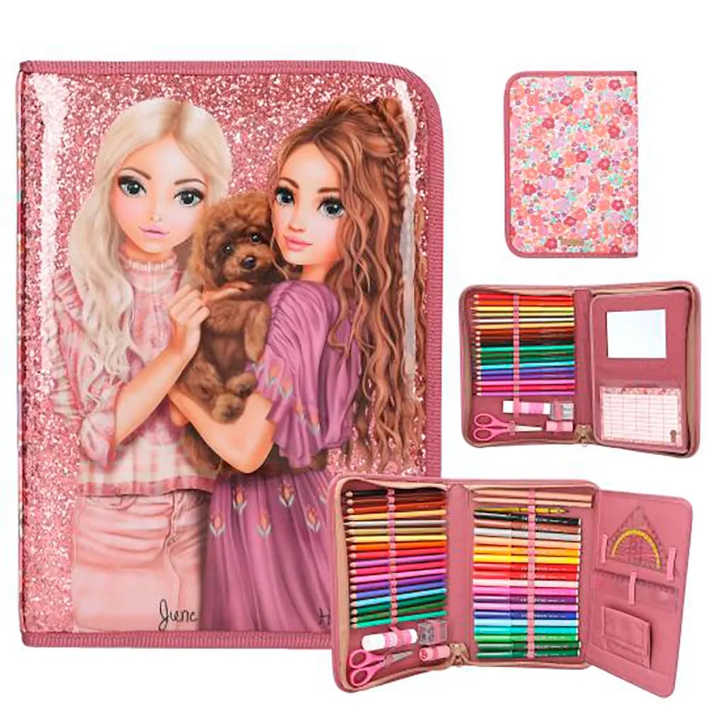 Depesche 13284 TOPModel Girl Power – fyllt pennfodral i rosa, med modellmotiv och färgglada lappar, pennfodral med färgpennor, linjal, sax UVM.