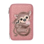 Depesche TOPModel Juicy 13324 fyllt pennfodral med 3 fack i krämfärgat och rosa, med modellmotiv, apa och färgglatt mönster, pennfodral med färgpennor, sax, linjal och mycket mer, Brun, Pennskrin