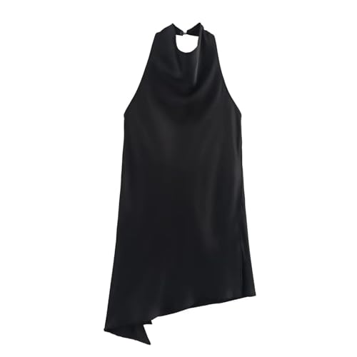 LYXYGMV Elegant kostym för kvinnor med solida byxor, asymmetriska toppar med halslinning och öppen rygg, lösa byxor med dragsko, kontorskläder lämplig för sommaren (svart topp, L)