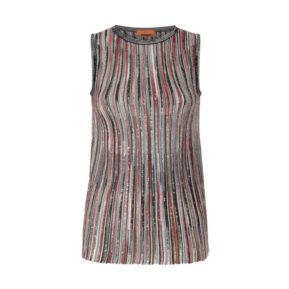 Missoni, Toppar , Dam, M, Paljetter, Ribbad Ärmlös Topp i Blandviskos med Paljetter