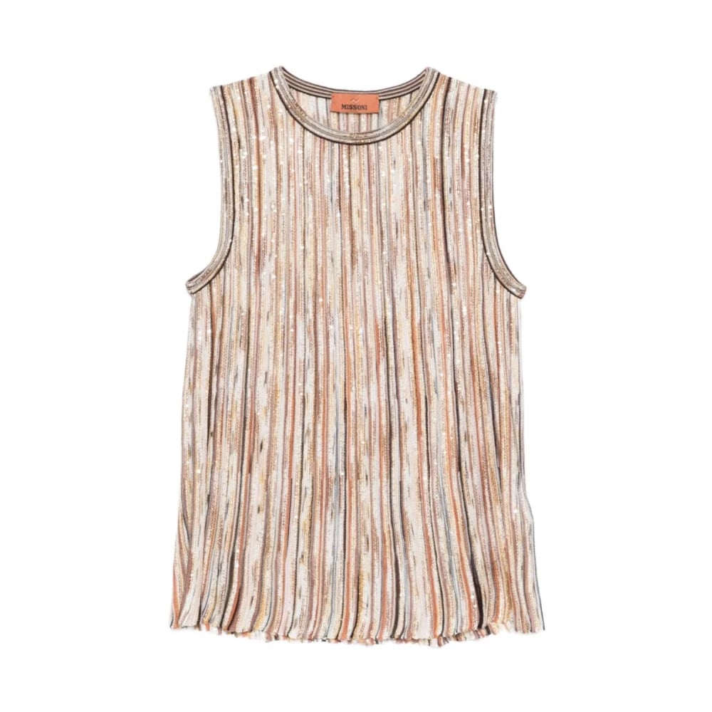 Missoni, Toppar , Dam, M, Paljetter, Ribbad, ärmlös topp med paljetter i blandad viskos