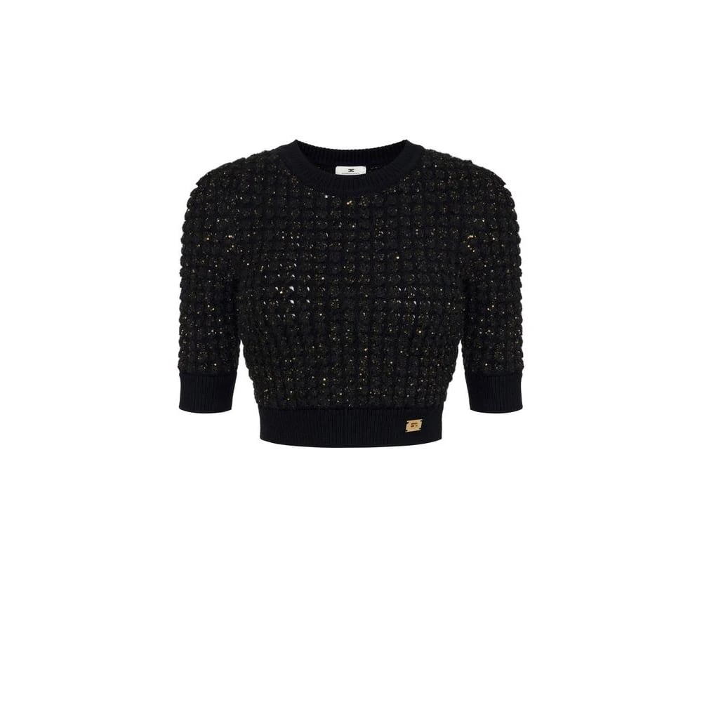 Elisabetta Franchi, Stickade Tröjor , Dam, M, Paljetter, Boucléstickad topp med paljetter