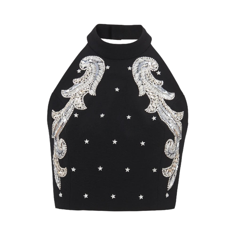 Balmain, Toppar , Dam, XS, Paljetter, Barock broderad topp utan rygg