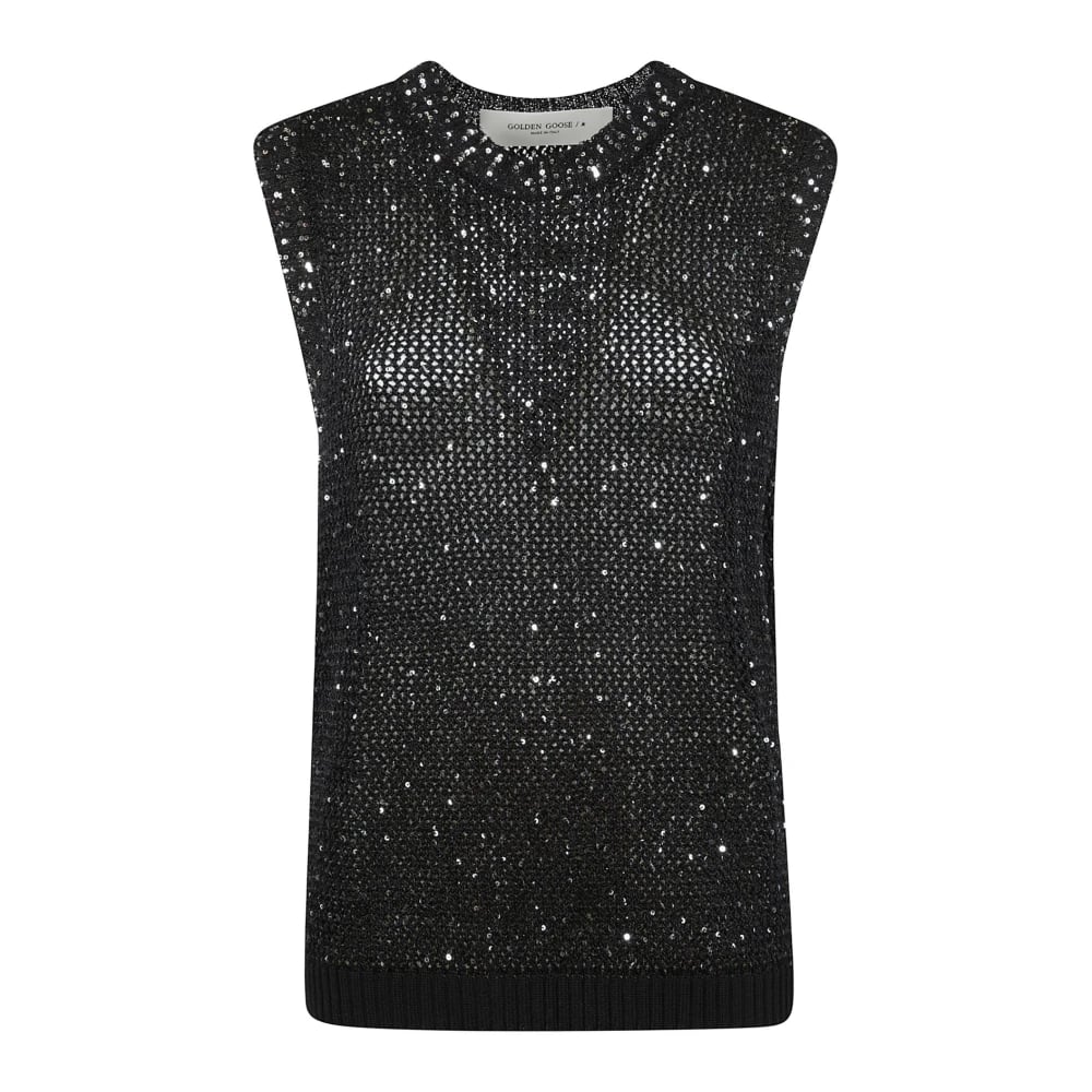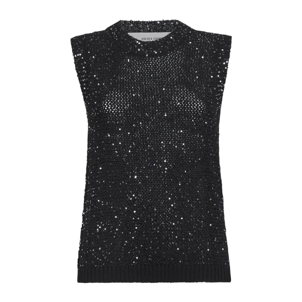 Golden Goose, Toppar , Dam, S, Paljetter, Meshstickad topp med paljetter och kontrasterande detaljer