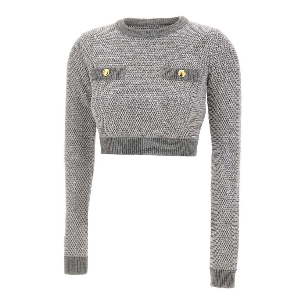 Elisabetta Franchi, Stickade Tröjor , Dam, M, Paljetter, Stickad topp med paljetter