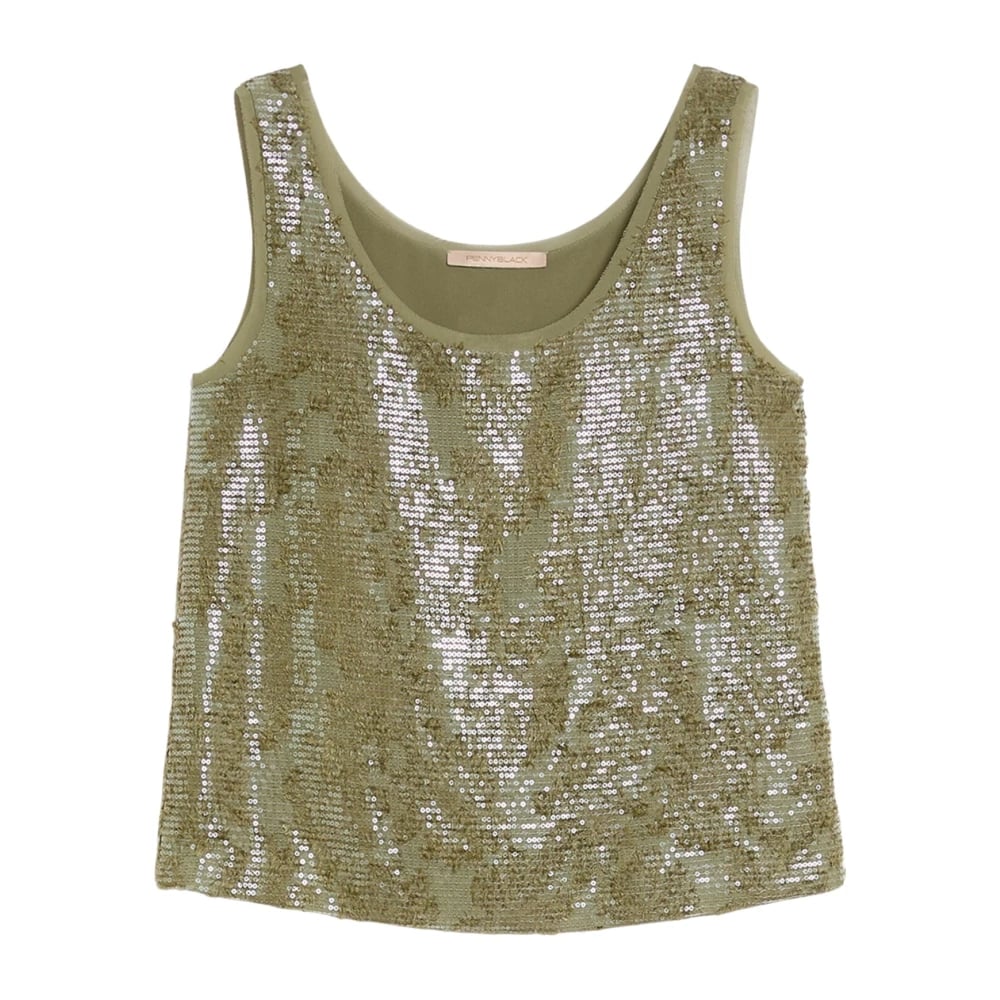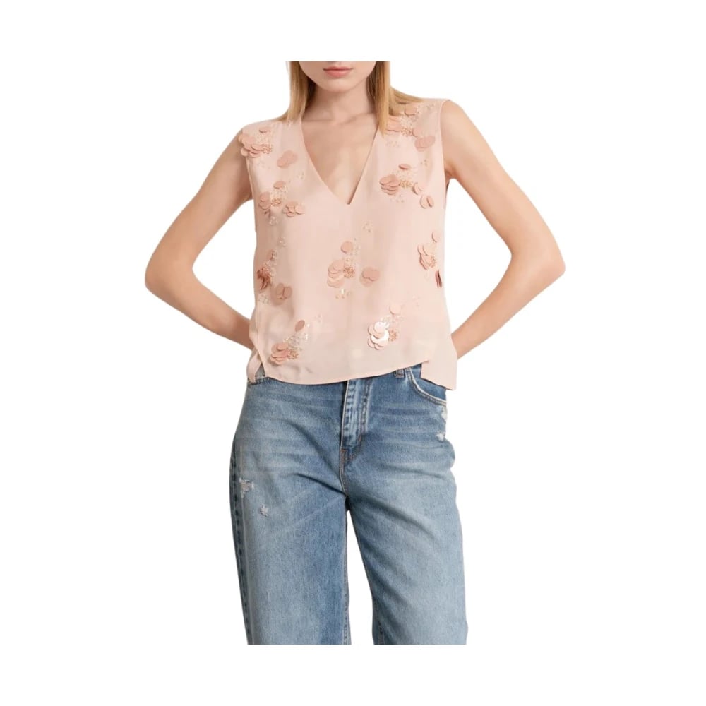 Pennyblack, Toppar , Dam, L, Paljetter, Fil Coupé Ärmlös Topp med Blommor