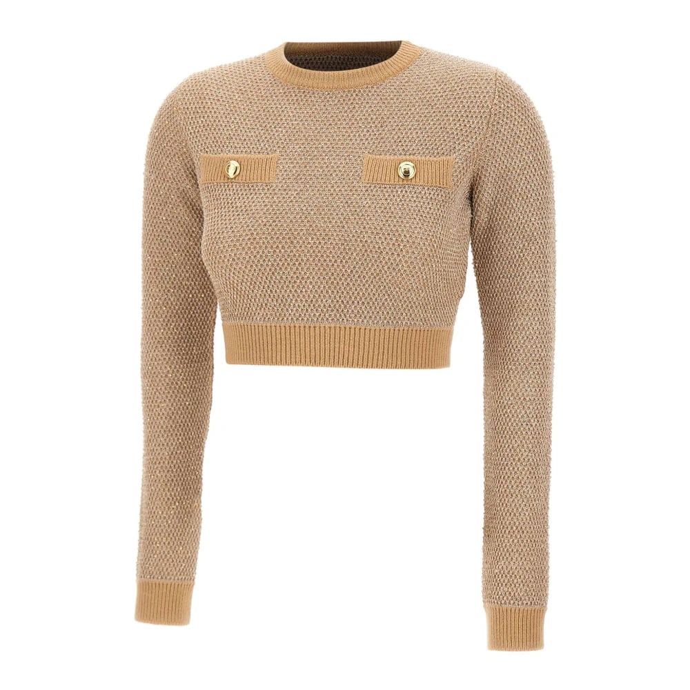 Elisabetta Franchi, Stickade Tröjor , Dam, M, Paljetter, Stickad Topp med Paljetter