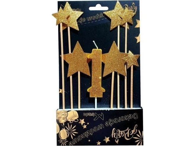 Mk Trade Födelsedagsdekoration Df-072, Toppstjärna I Guld Och Ljus "1", 8 St.