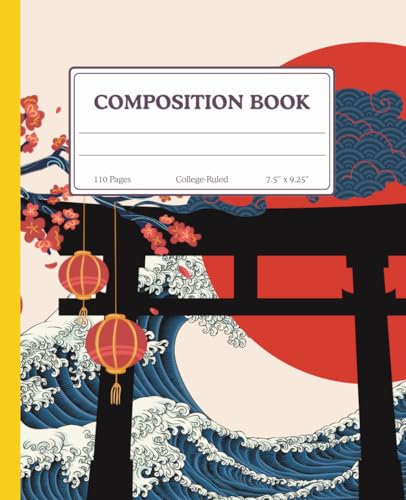 Retro Japanese Torii Gate Composition Notebook (College Ruled, 110 Pages, 7.5” x 9.25”): Red Sun, Waves, and Lanterns Design – College Ruled Book for School, Journaling, and Study Notes