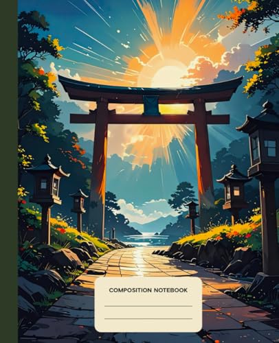 Composition Notebook College Ruled: Vintage Torii Gate Design | Japan Ink Dark Aesthetic School Student Gift Journal