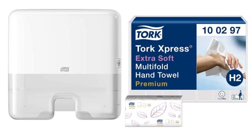 Tork Xpress multifold pappershanddukar 100297, H2 Premium handdukar för handduksdispenser, vit, 21 x 100 handdukar & Tork Xpress mini multifold dispenser pappershandduk 552100 - elegant design, vit