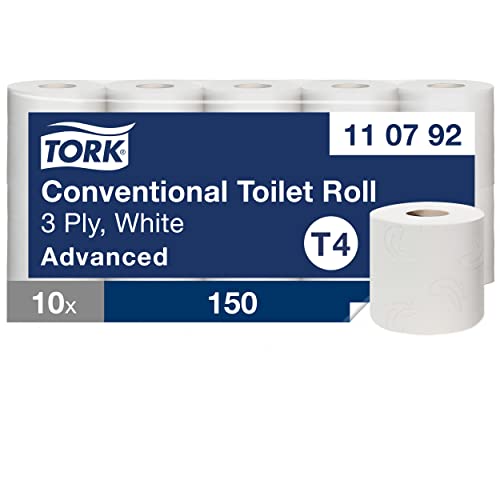 Tork 110782 små rullar toalettpapper advanced kvalitet för T4 små rullsystem/3-lagers WC-papper och rivfast, vit (30-pack)