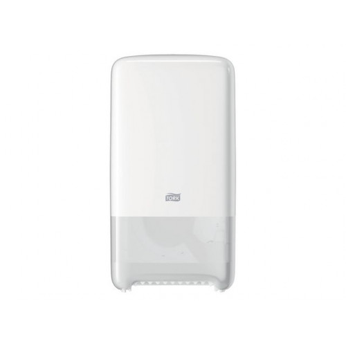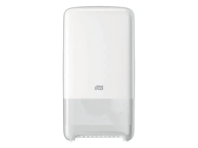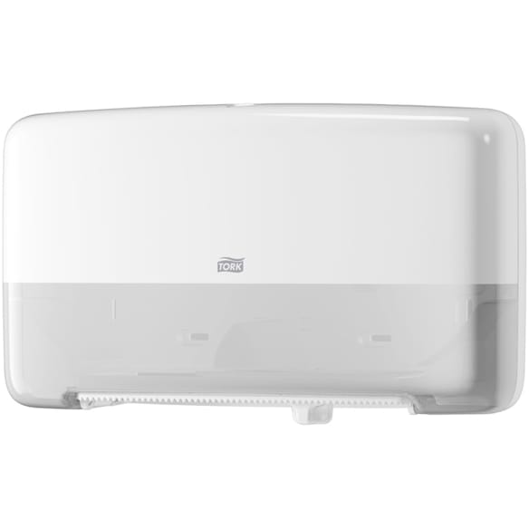 Tork 557500 Twin mellanstor toalettrulle dispenser T6/plastdispenser lämplig för T6 kompakt toalettsystem påfyllning/väggmonterad dispenser i vitt