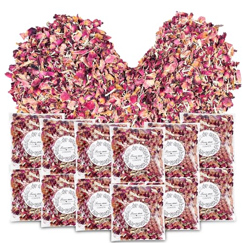 Magrimaxio 12-pack rosenblad bröllop, bröllopskonfetti 120 g, spridda blommor dekoration, blomkonfetti bröllop naturliga, torkade kronblad nedbrytbara, blomkonfetti för födelsedagsfest
