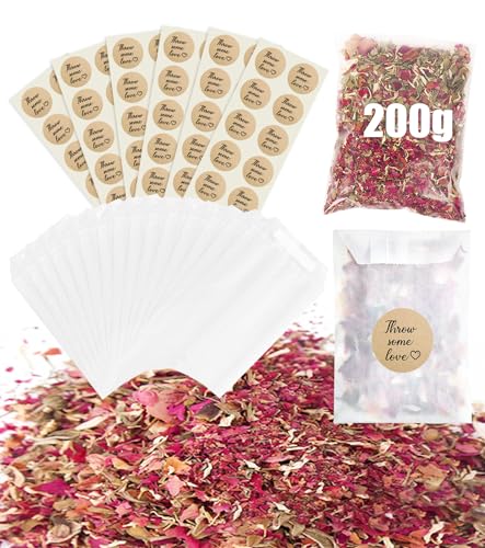 200 st blomkonfetti för bröllop, 100 % naturliga torkade rosenblad, för födelsedag, förslag, fest, firande, miljövänlig och biologiskt nedbrytbar