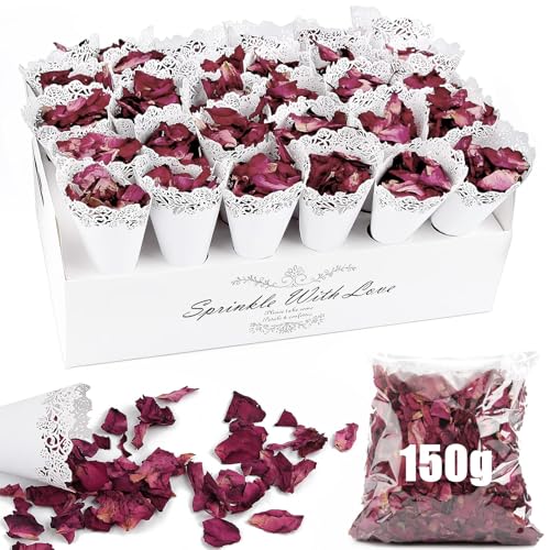 Mbsomnus 150 g Kronblad för Bröllop - 50 Papperspåsar Konfetti, Romantiska Torkade Rosenblad för Bröllop, Firande och Förslag