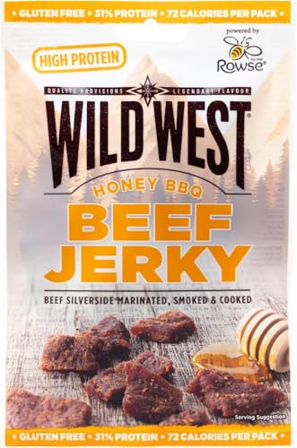 Wild West Beef Jerky, Honung BBQ 16x60g high Protein torkat kött, Beef Jerky Protein Snack, torkat nötkött