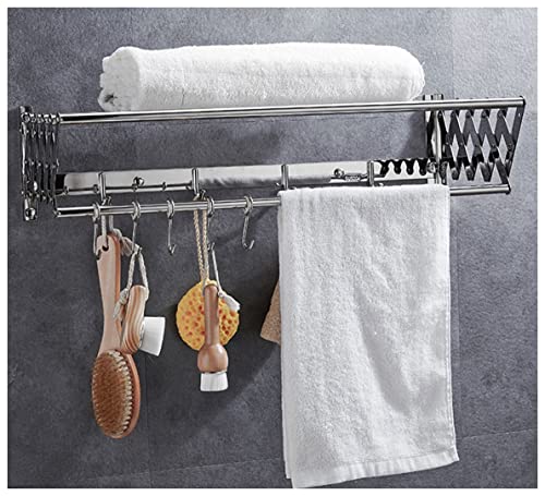 YCBTREE Tvättställ, 60 cm utdragbar tvättlina kolstål torkställning vägg med 4 krokar platsbesparande handdukshållare vägg 25 kg lastkapacitet för inomhus- eller utomhusbruk balkong terrass (60 cm)
