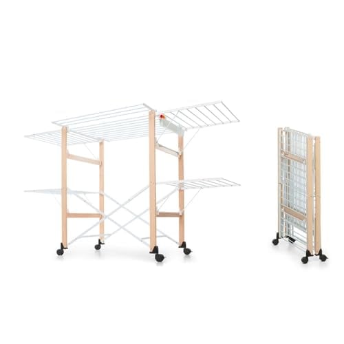 Torkställning i metall med hjul - stort utrymme, robust och praktiskt - bekvämt i hemmet, balkong och trädgård - hopfällbar och platsbesparande