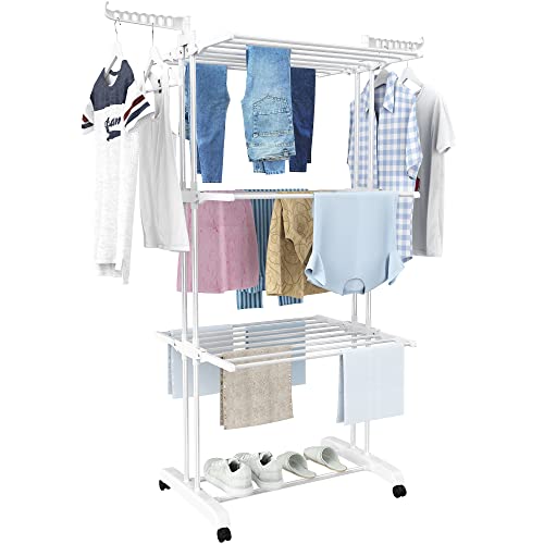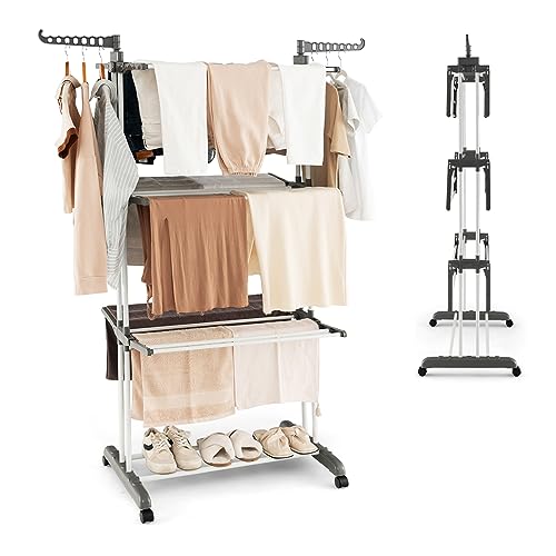 HOMIDEC 172cm vikbart torkställning torntork, 4 våningar torkställ klädställ med 4 vridbara hjul och 2 vikbara vingar, stabil klädtorkställare, hopfällbar, för inomhus- och utomhusbruk