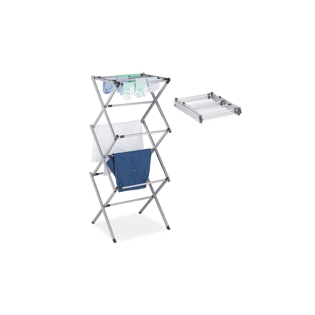 Relaxdays Upprätt hopfällbar torkställning, 11 stänger, 6 nivåer, 105 x 73 x 37 cm, tornupphängning, klädtorkning, silver, stål