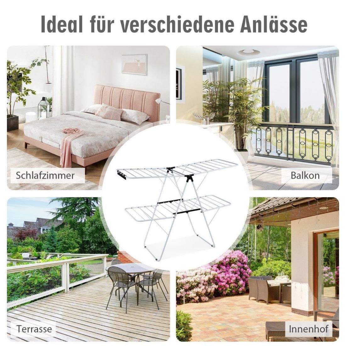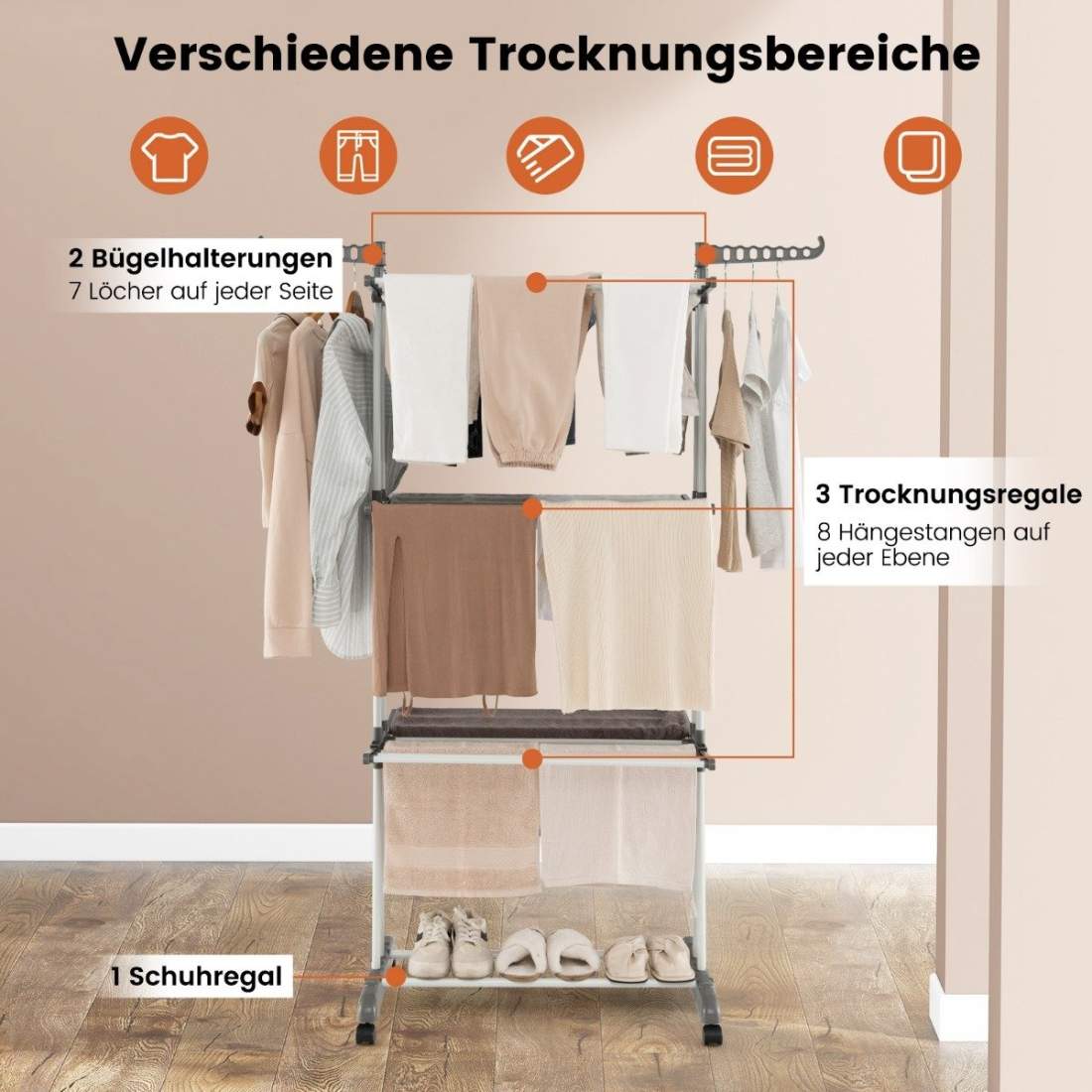 COSTWAY JZ10165DE 4-stegs torkställning med hjul, hopfällbar torktumlare med 2 vridbara sidovingar, fristående stående torkställning utdragbart för inomhus- och utomhusbruk