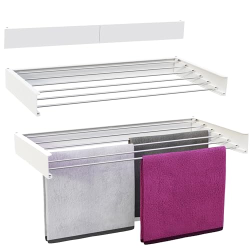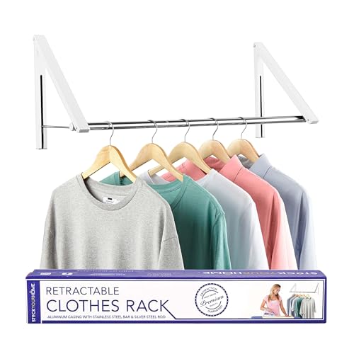 Stock Your Home Infällbart klädställ – väggmonterad hopfällbar klädhängare torkställning för tvättstuga garderobsförvaring organisation, aluminium, enkel installation, 2 ställ med stång (vit)