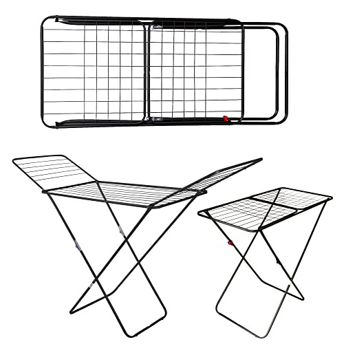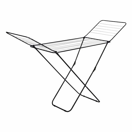 York tvätttork Stabilo robust metalltork, Klädställning Torkställning Hopfällbar för små rum, balkonger och terrasser – stor kapacitet, lätt och stabil – svart – upp till 15 kg lastkapacitet