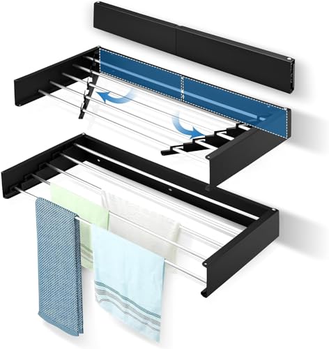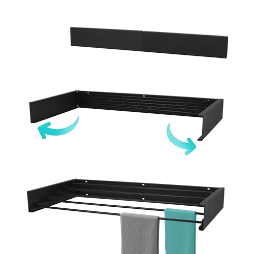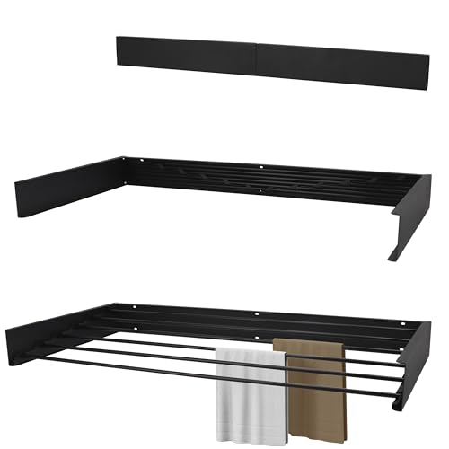 Anjuer Infällbart klädhängare, väggmonterad, hopfällbar, torkställning för tvättstuga, garderob, förvaring, organisation, aluminium, enkel att montera (svart)