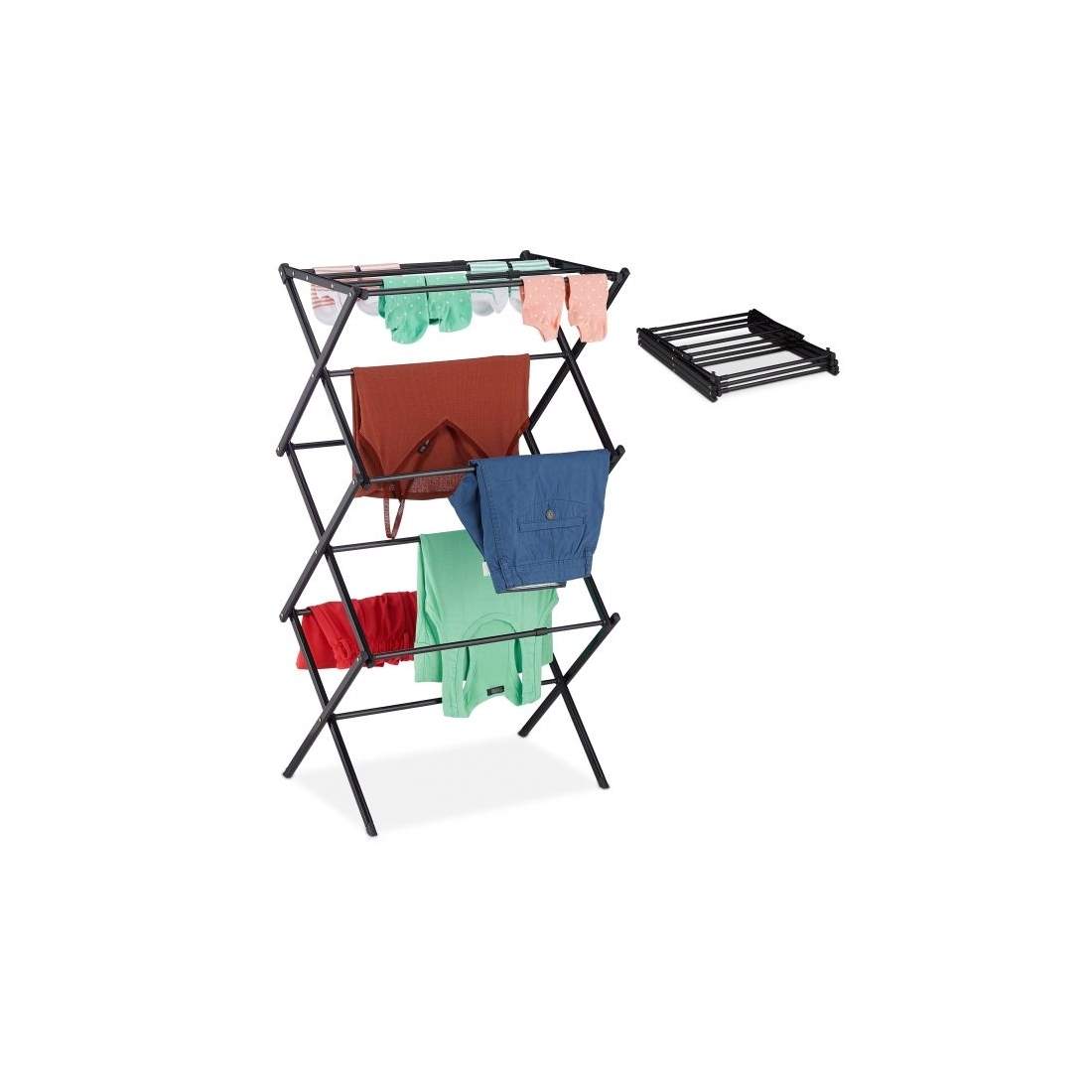 Relaxdays Upprätt hopfällbar torkställning, 11 stänger, 6 nivåer, 105 x 73 x 37 cm, torntorkning, svart, stål