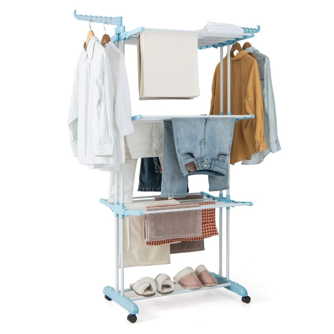 4-lagers hopfällbar torkställning för kläder med roterande vingar